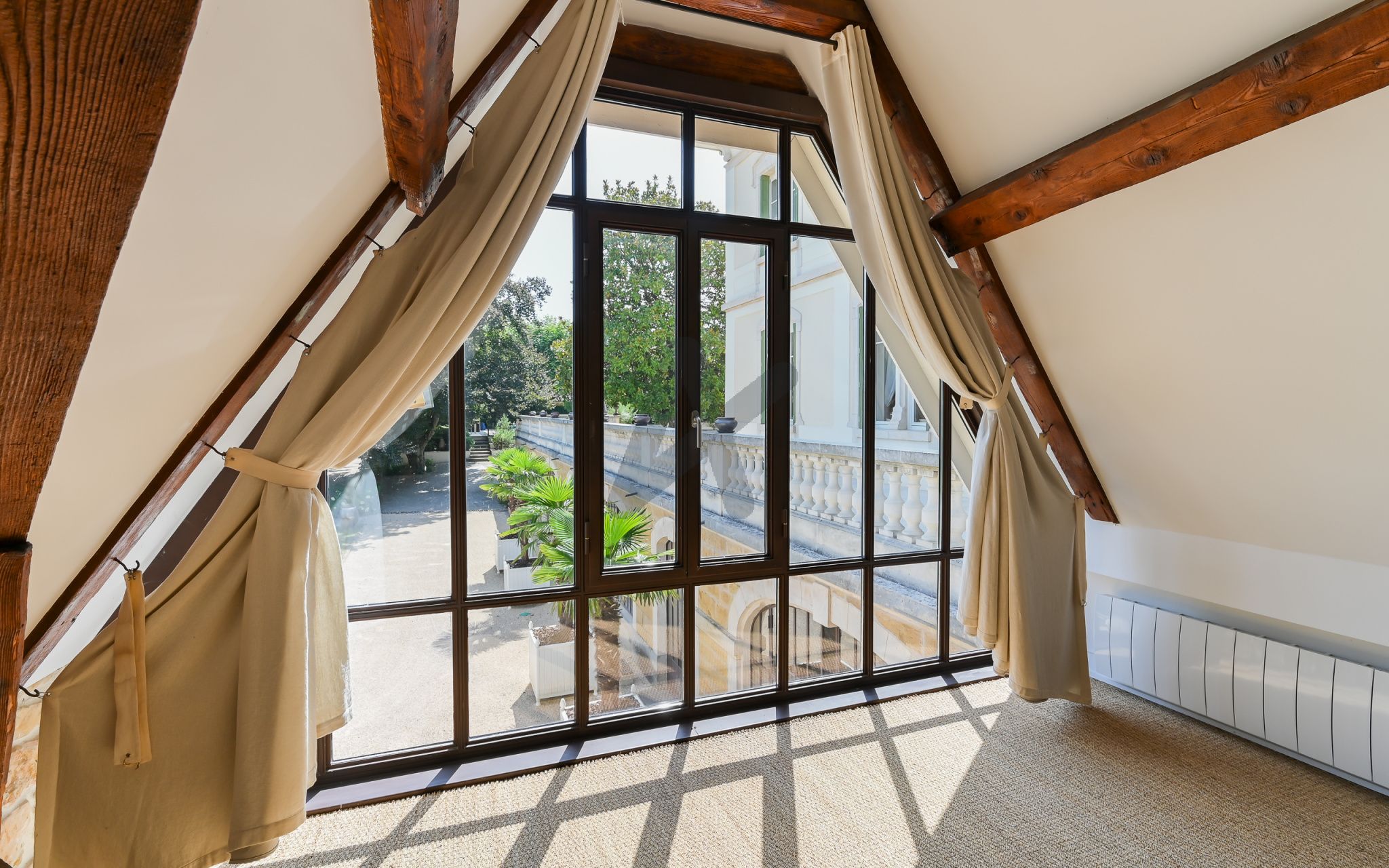 Les étages accueillent huit chambres aux proportions généreuses et quatre salles de bains, offrant confort et intimité à chacun.
