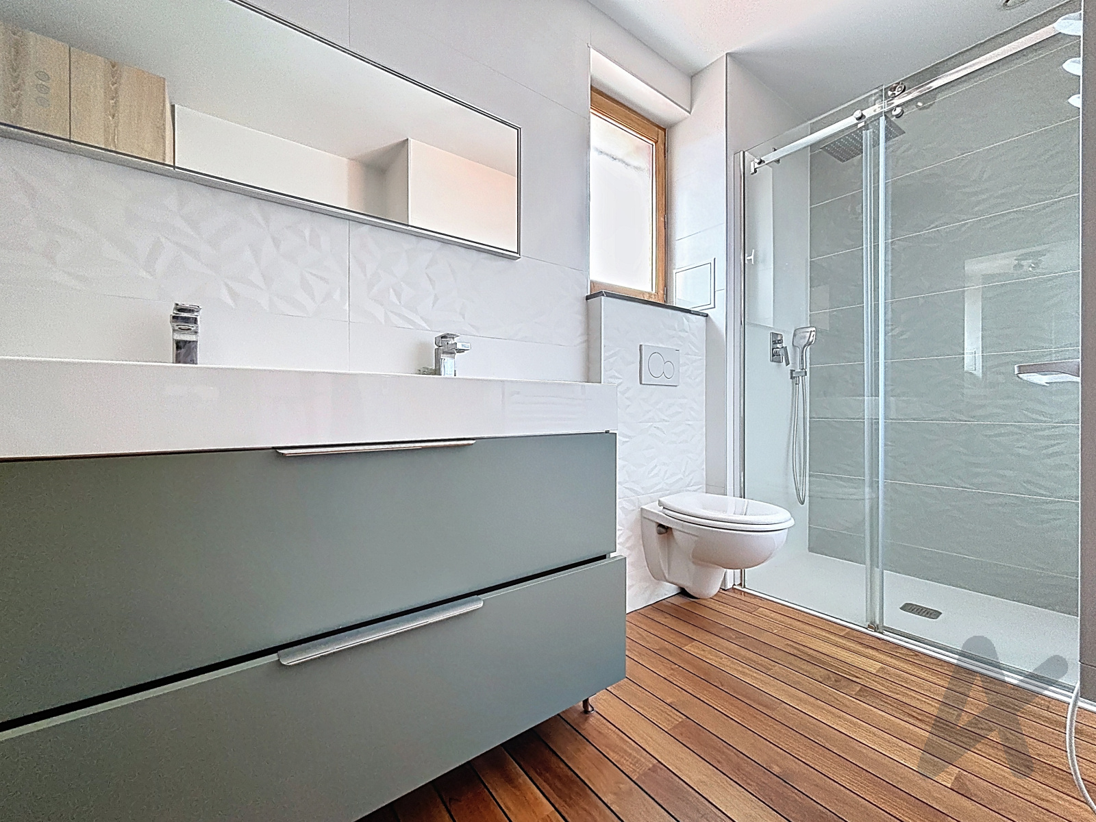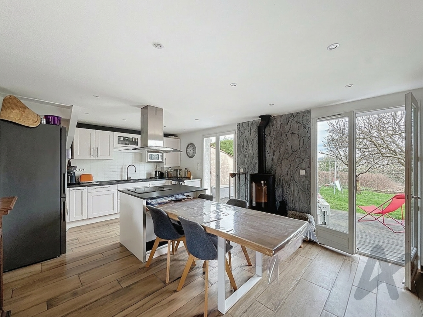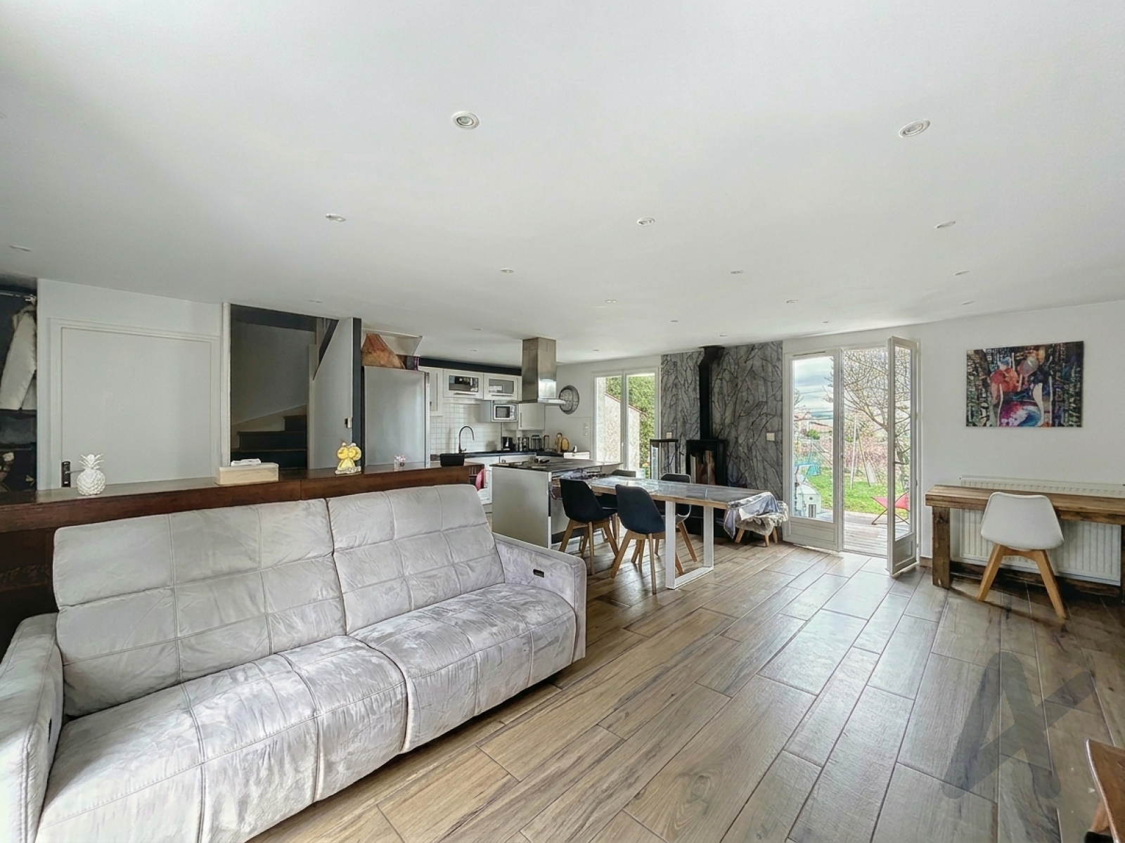 Au rez-de-chaussée, vous profiterez d’une spacieuse pièce de vie lumineuse avec cuisine ouverte, aménagée et équipée.