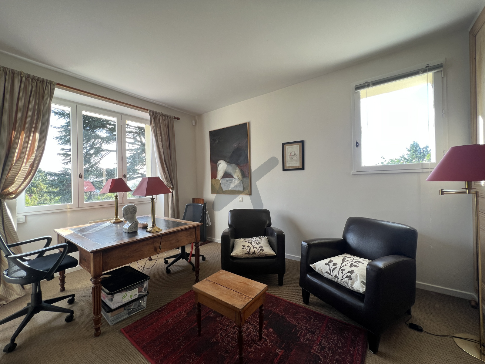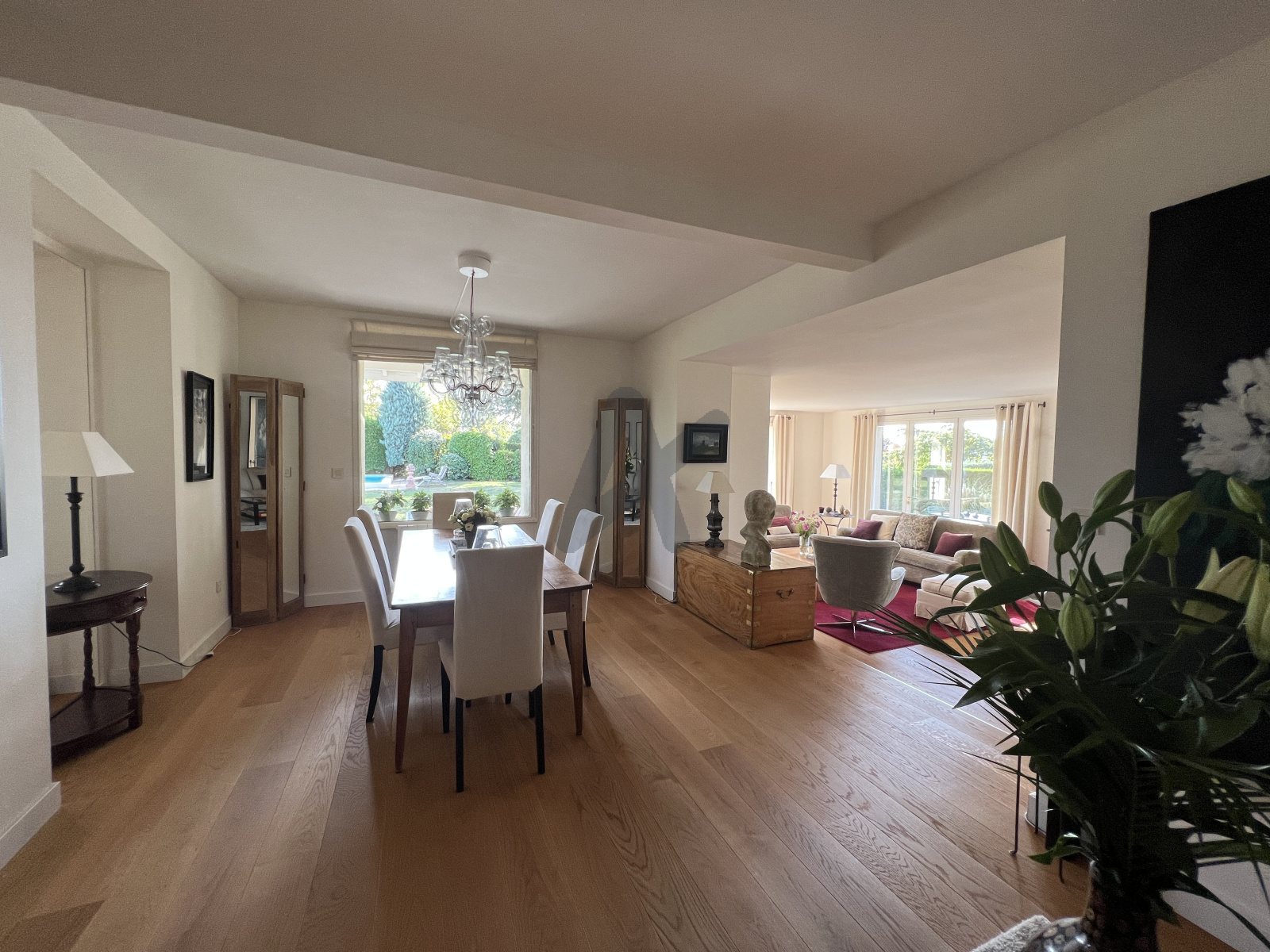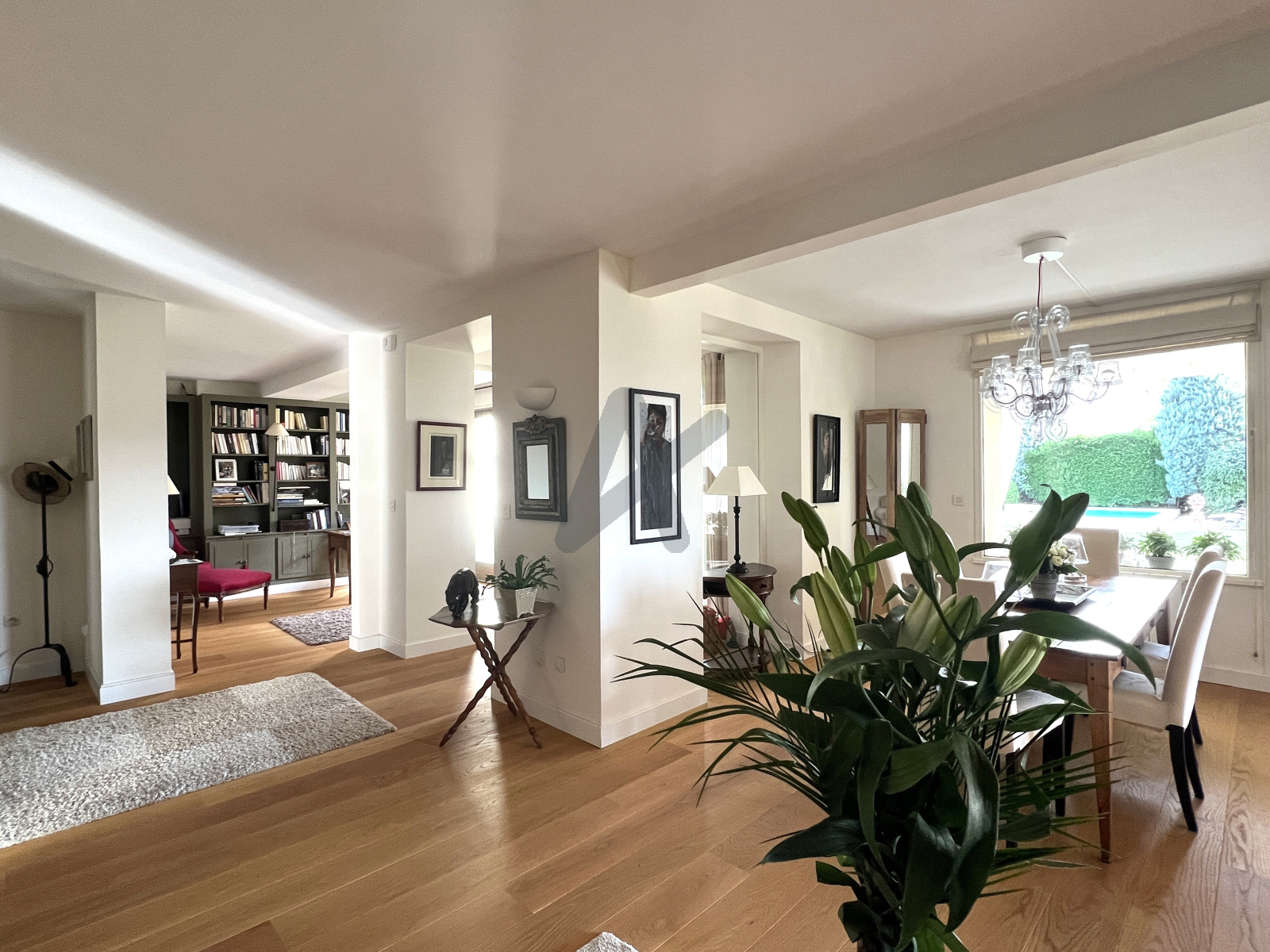 SOUS COMPROMIS Cour de coeur pour cette maison de charme , au CALME, sur son beau terrain plat et arboré de 1643 m2 . SANS VIS-A-VIS, exposée SUD et OUEST, la maison se compose d'une entrée,vestiaires, une grande piece de vie lumineuse avec salon , salle à manger ,un bureau bibliotheque, une cuisine , le tout ouvert directement sur le jardin et la terrasse . A l'étage , une suite parents avec dressing, salle de bains et balcon, 2 chambres , une salle de bains et toilettes . Combles aménagées pour une chambre supplémentaire .