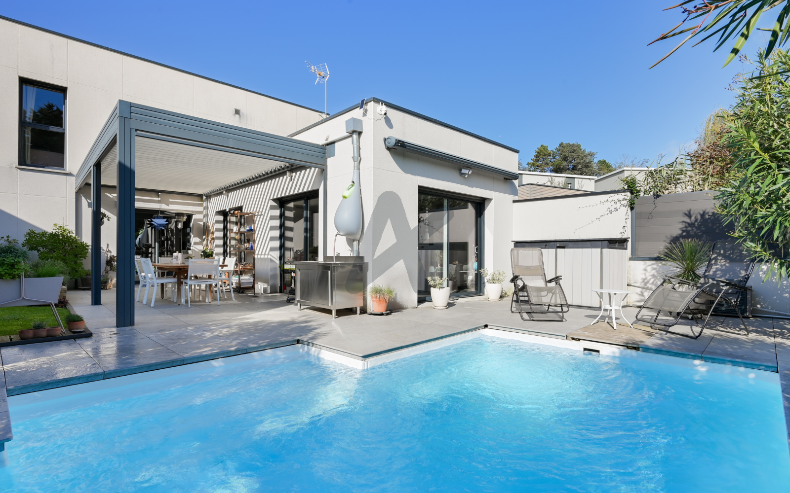 Au centre du village de Limonest, venez découvrir cette jolie maison lumineuse construite en 2014 sur son terrain plat de 381 m2 avec sa piscine et une vue dégagée .La maison, orientée sud, se compose d'une entrée, une piece de vie lumineuse ouverte sur le jardin et la terrasse, une cuisine équipée ouverte, une salle à manger, un bureau, buanderie, cellier, toilettes . A l'étage, une chambre parents avec salle d'eau, 2 chambres ,une salle de bains et des toilettes . Garage .Car port . Pergola bioclimatique . Chauffage au sol et rafraichissant . Stores et brises soleil orientables .