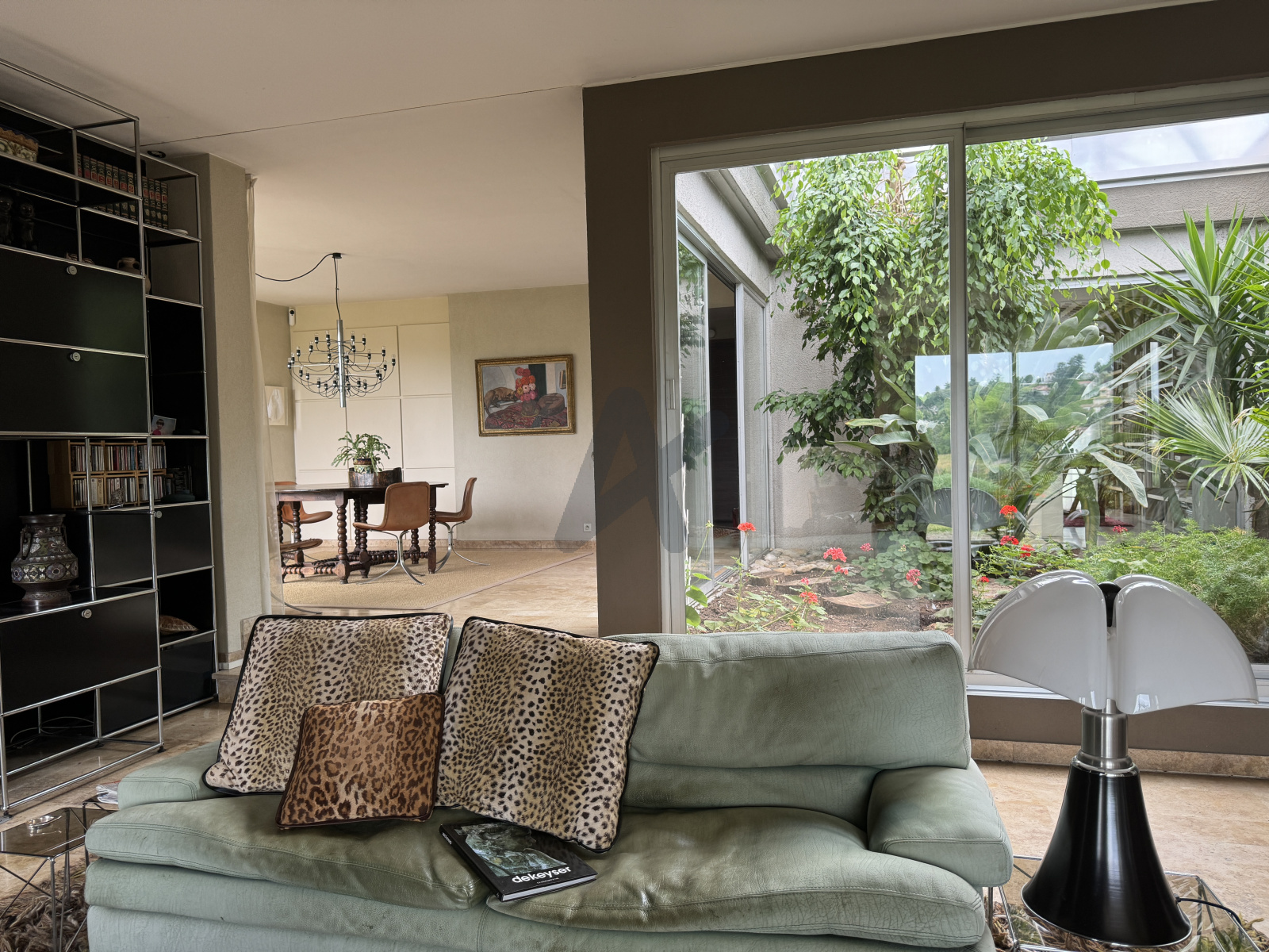 Nichée au cœur d’un écrin de verdure d'environ 10 000 m², cette magnifique maison d'architecte de plain-pied, d'environ 240 m², vous séduira par son caractere, son environnement et sa vue .