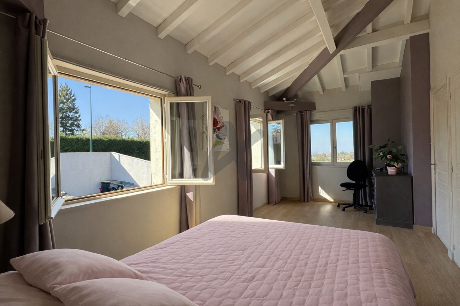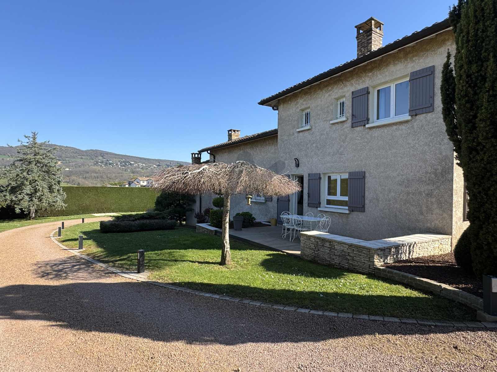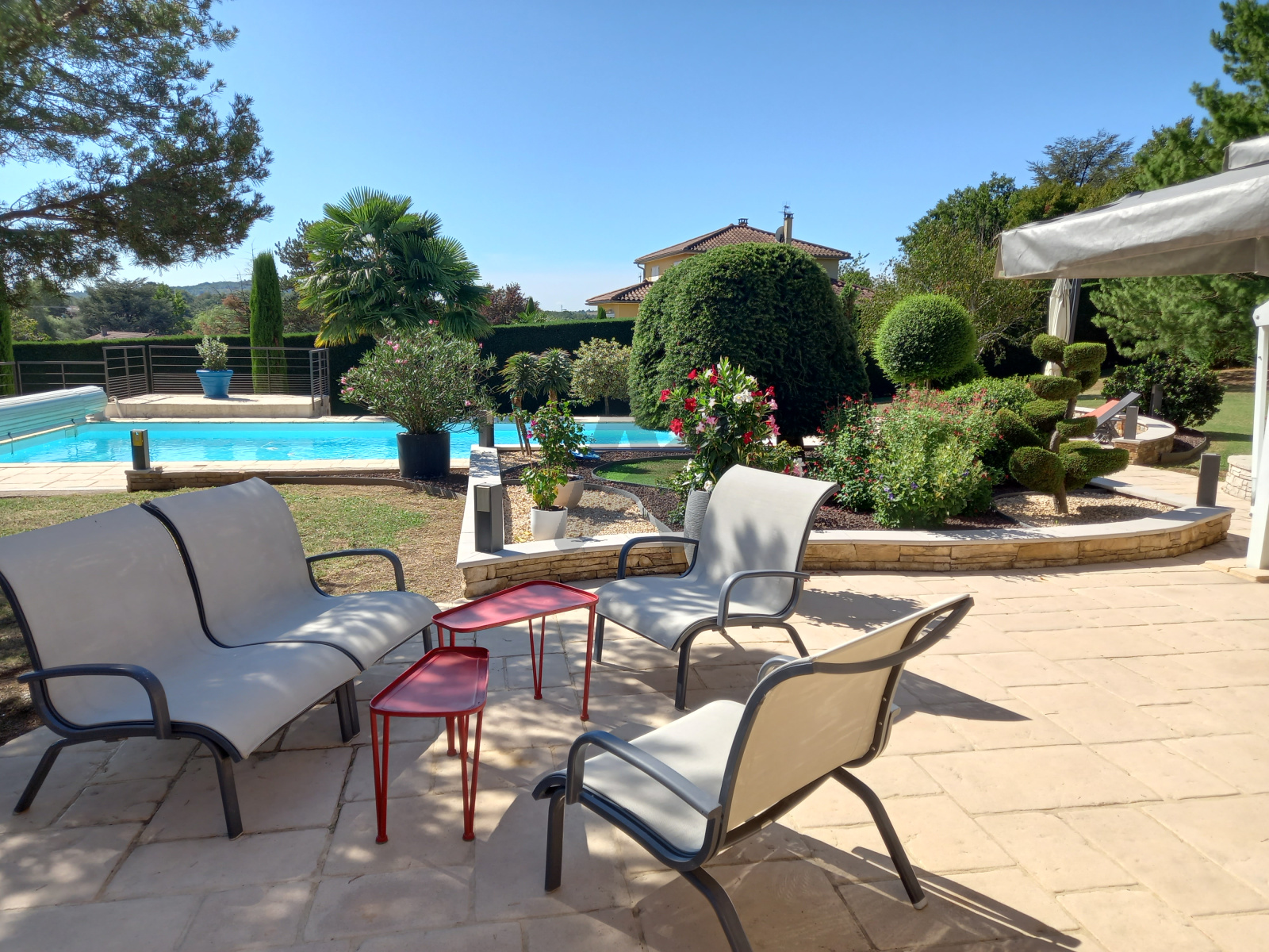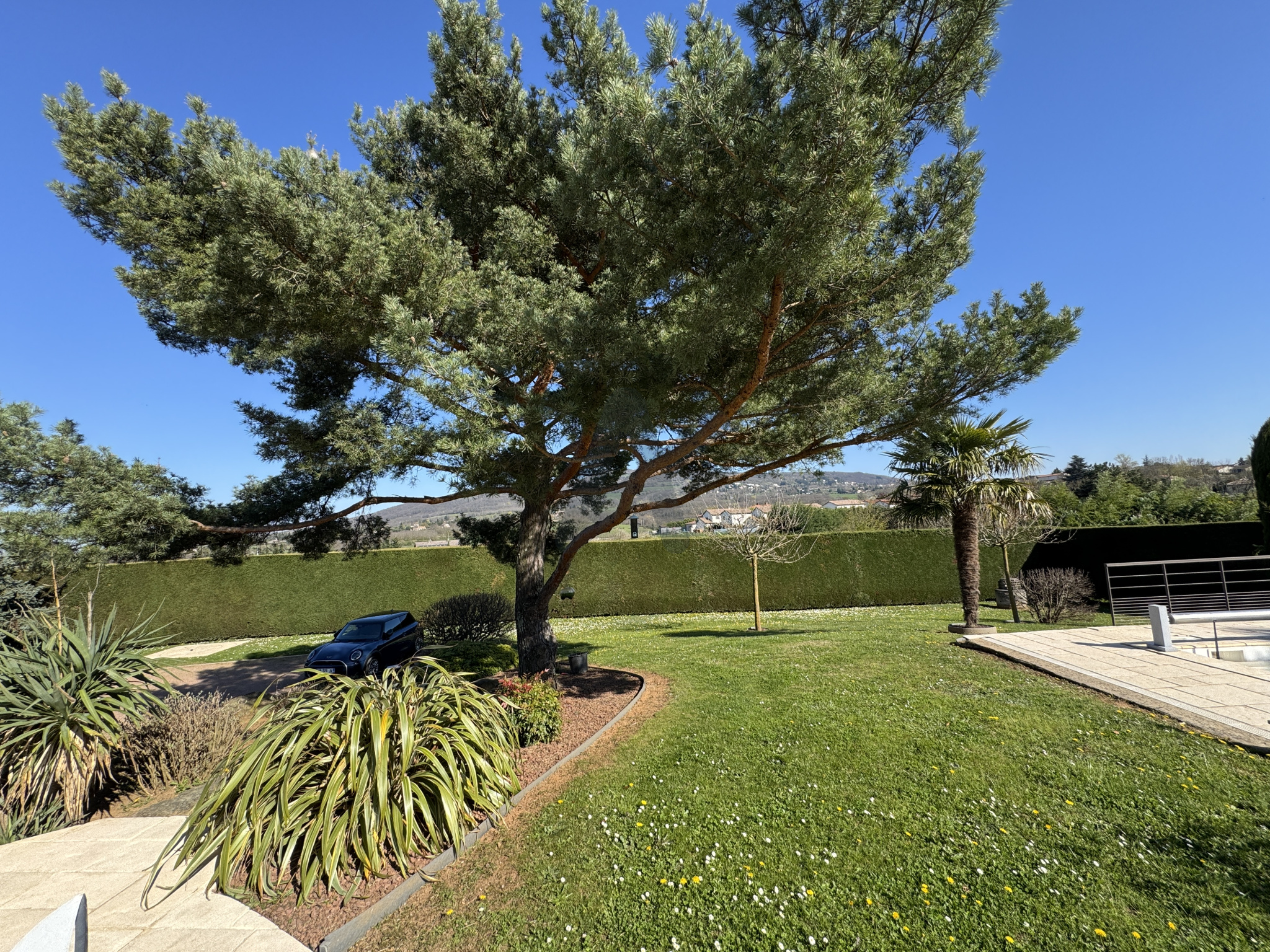 La propriété est implantée sur un magnifique terrain plat de 3.000 m2 , clos et harmonieusement arboré , avec piscine chauffée et grandes terrasses, offrant un cadre de vie rare, verdoyant et sans nuisance, tout en restant proche des accès et des transports.