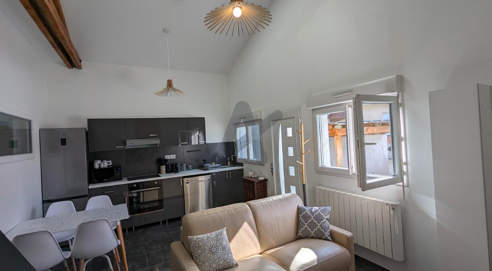 Rare - Montanay - A proximitié immédiate du bus, à 10 mn à pied des commerces de Neuville sur Saône, maison de ville entièrement rénovée, d'une surface de 47 m2 au sol, 37 m2 habitables, offrant au rez de chaussée, une jolie pièce à vivre lumineuse de 19m2, ouverte sur une terrasse exposée Ouest, avec cuisine ouverte équipée, un bureau de 8 m2 avec placard, une salle d'eau et une buanderie/cellier. A l'étage se trouve la chambre équipée de rangements. Une place de parking privative compète ce bien rare.