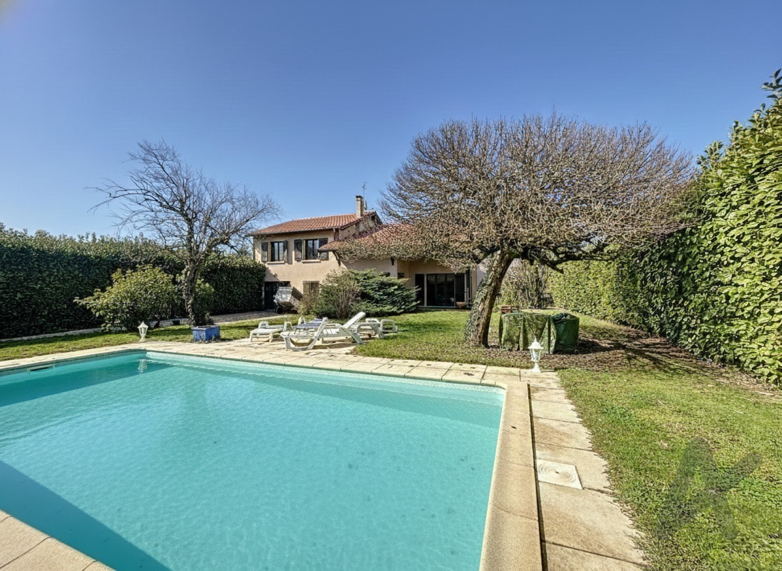 125 m² habitables + mezzanine 24 m² | Terrain plat et clos de 1 242 m² | Piscine | Garage | Séjour cathédrale