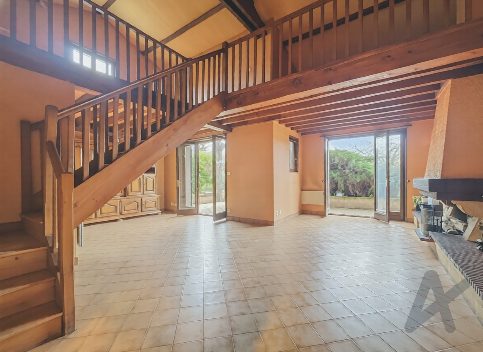 Séjour cathédrale de plain-pied d’environ 35 m², lumineux et agréable à vivre