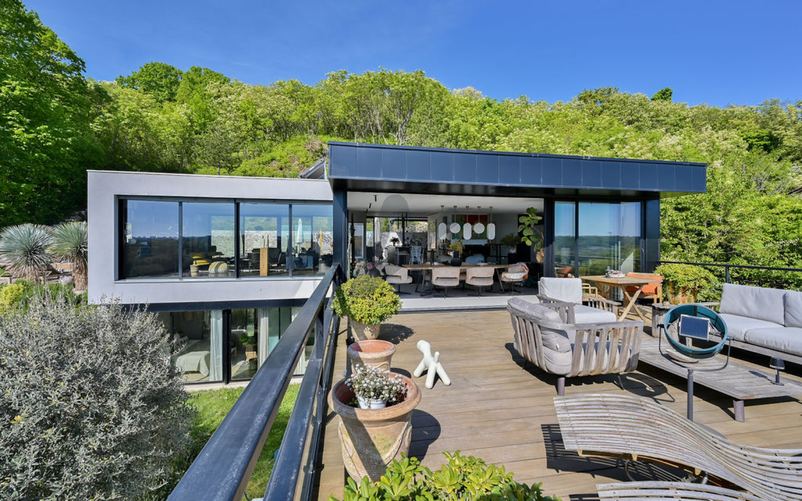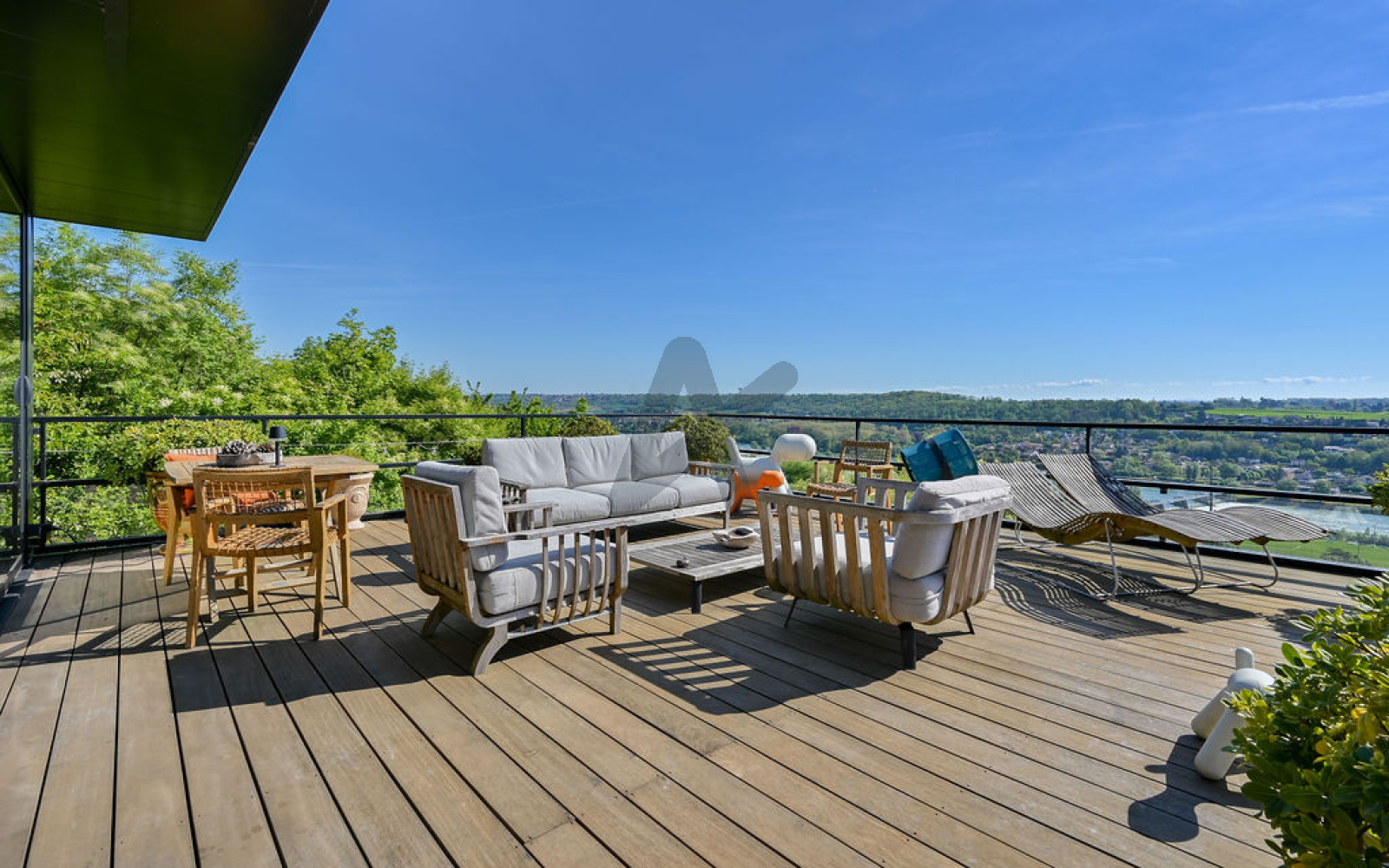 Située sur les hauteurs de Couzon-au-Mont-d'Or, cette maison contemporaine construite en 2008 offre un cadre de vie rare, où le confort moderne se conjugue avec un environnement naturel privilégié.