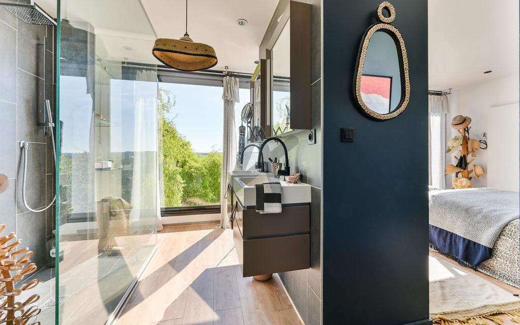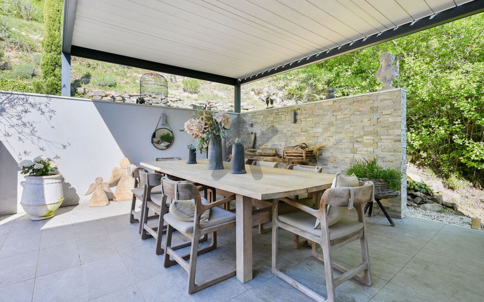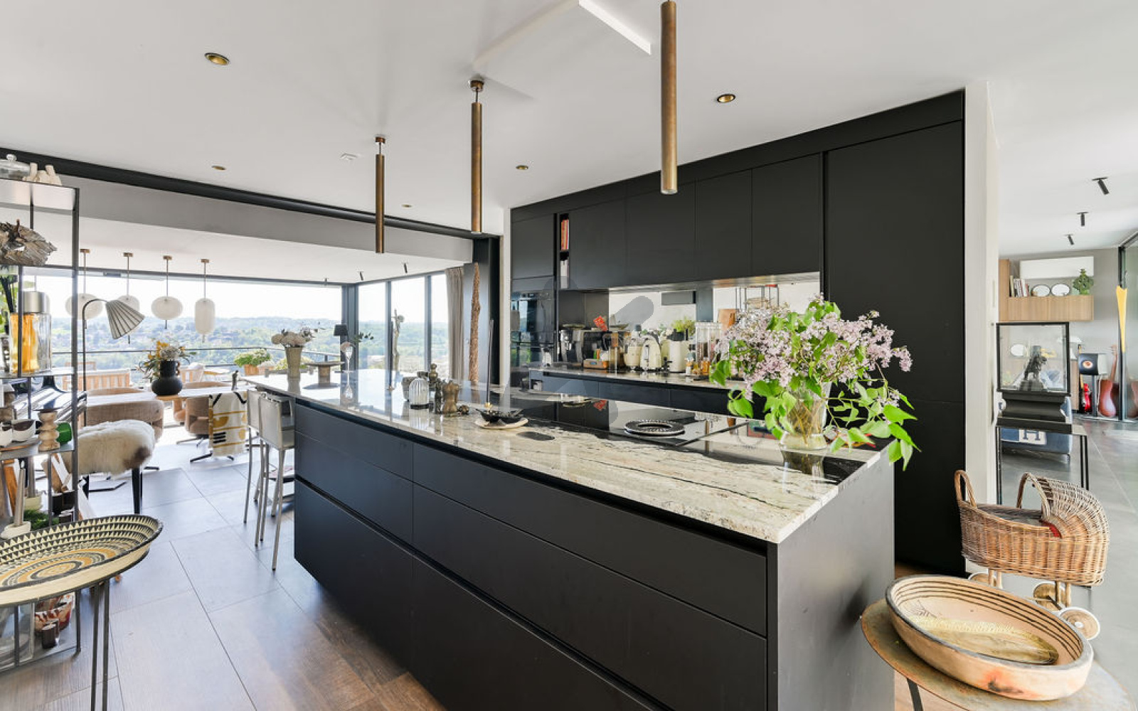L’espace de vie principal, composé d’un salon et d’une salle à manger, invite à la convivialité et se prolonge naturellement vers l’extérieur, tandis que la cuisine américaine équipée allie élégance et fonctionnalité. L’ensemble a été pensé pour offrir un quotidien fluide et agréable, aussi bien pour la vie de famille que pour recevoir.