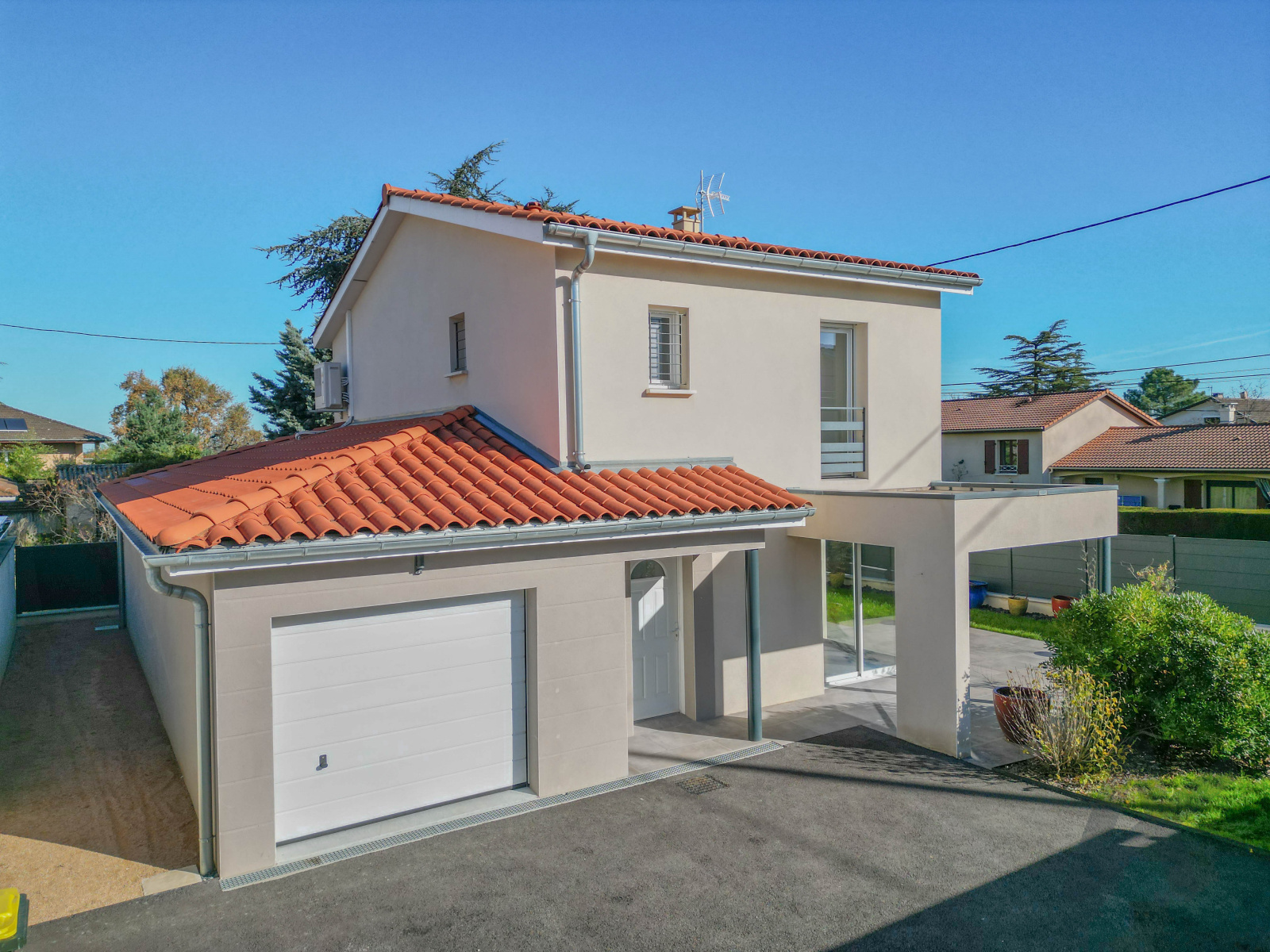 À découvrir à SAINT-GENIS-LES-OLLIERES, belle maison contemporaine de 2014 offrant 113 m² habitables à proximité du centre du village, des écoles. L'arrêt de bus TCL est situé en face de la maison.