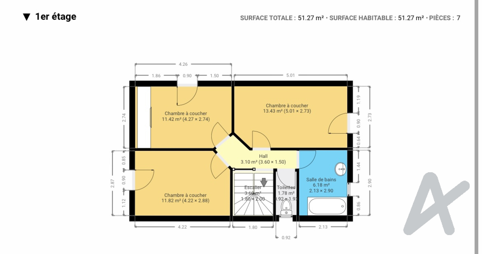 À l’étage, trois chambres avec parquet, une salle de bains et un WC séparé complètent l’ensemble.