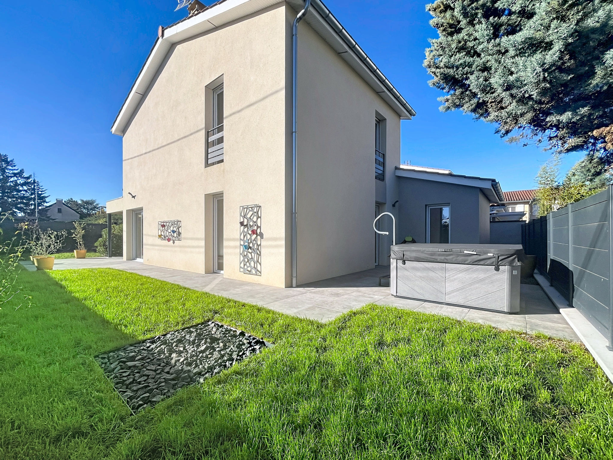 Prestations de qualité : volets roulants motorisés et pilotables via un système domotique, portail motorisé, visiophone, adoucisseur d’eau, alarme, fibre, spa récent. Façade, toiture et terrasse ont été nettoyées, peintures du rez-de-chaussée refaites.