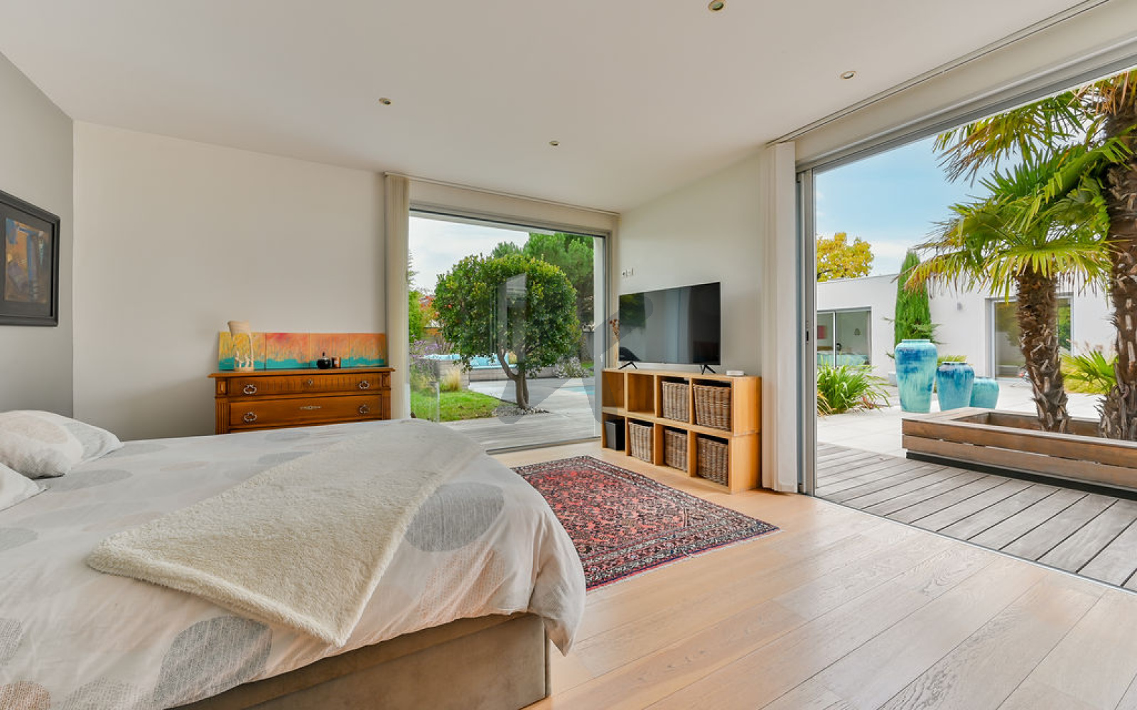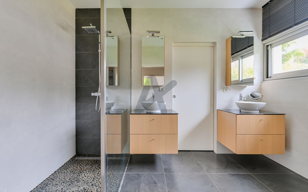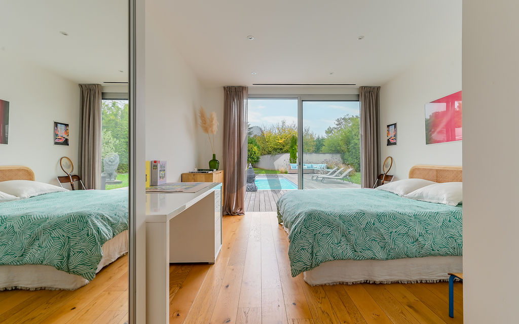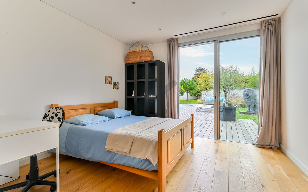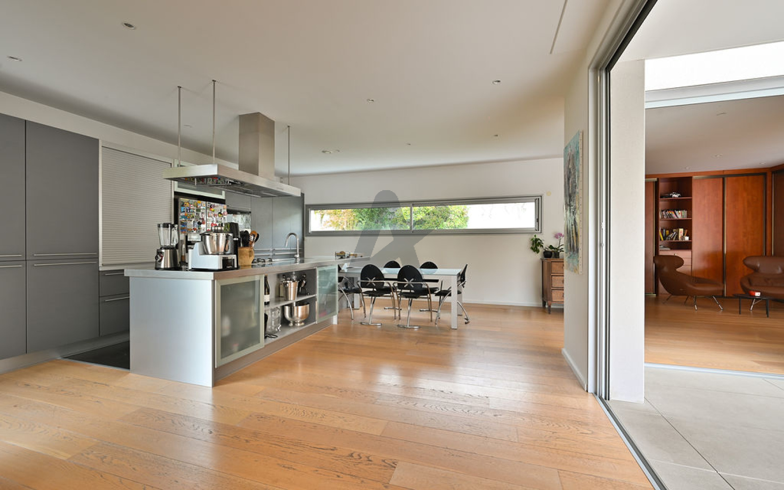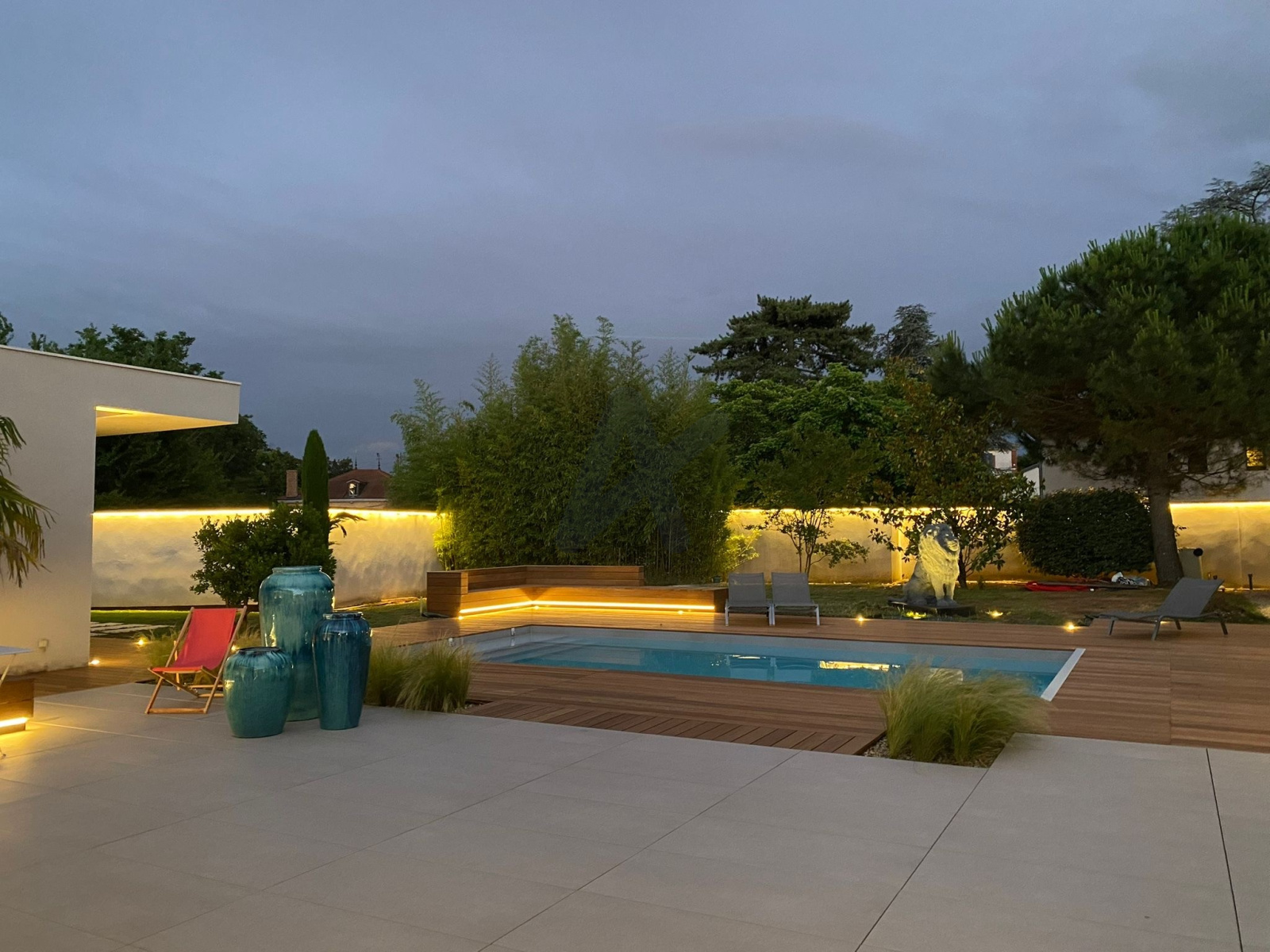 ECULLY, rare, secteur calme et résidentiel, à proximité immédiate du centre du village, des écoles, des commerces et transports, superbe maison contemporaine de plain-pied de 294 m² carrez et 302 m² avec annexe sur un terrain arboré et paysagé de 2 224 m² avec piscine. La maison se compose d'une entrée avec vestiaire, d'une très belle pièce de vie de 125 m² environ avec cheminée entièrement ouverte sur la terrasse de 267 m² et la piscine, une suite parentale avec dressing et salle de bains donnant sur piscine et terrasse, une suite avec sa salle de douche, une 3eme chambre ou bureau. Dans l'autre aile de plain-pied, un dégagement dessert 2 autres chambres, une salle de bains, toilettes, espace buanderie. Toutes les chambres sont climatisées. Le jardin plat et arboré bénéficie d'une piscine chauffée de 8x4m² avec rideau électrique. Un garage couvert, fermé et sous alarme, un carport, un local piscine de 3 m² (PHmetre et gestion du sel automatiques, pompe à chaleur, pompes et filtres), un abri de jardin de 12 m² et 7 places de parkings extérieures complètent ce bien d'exception. Belles prestations, quartier recherché sur Ecully, chauffage au sol, climatisation, maison contemporaine très lumineuse et entièrement de plain-pied.