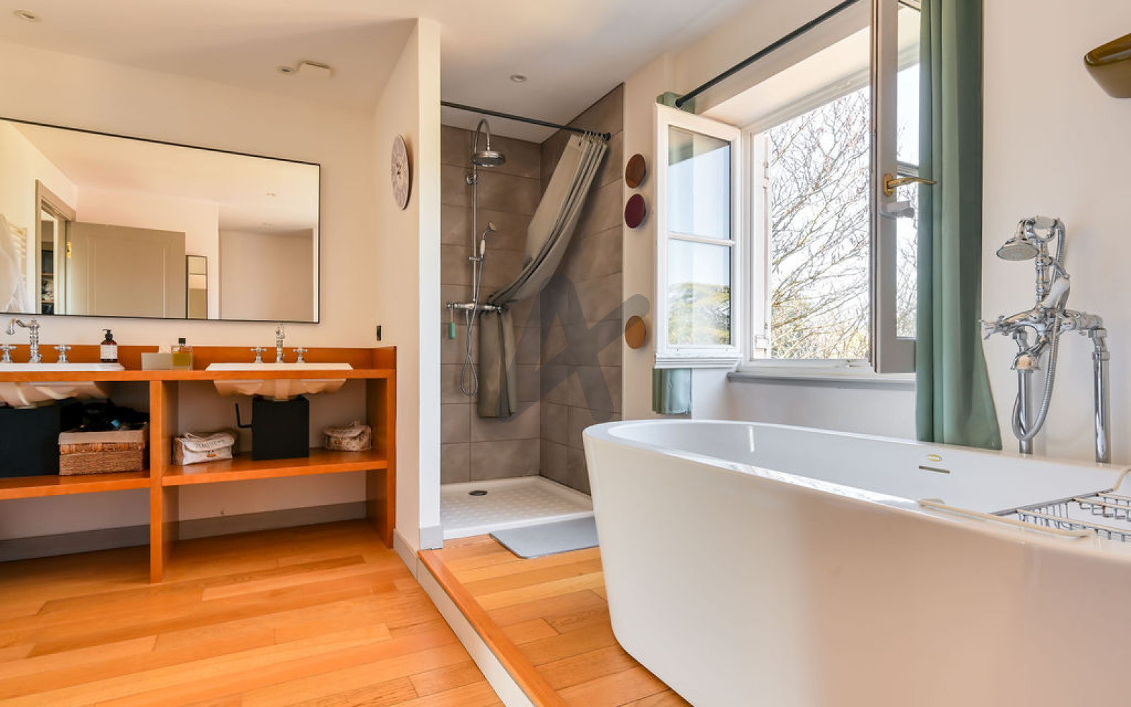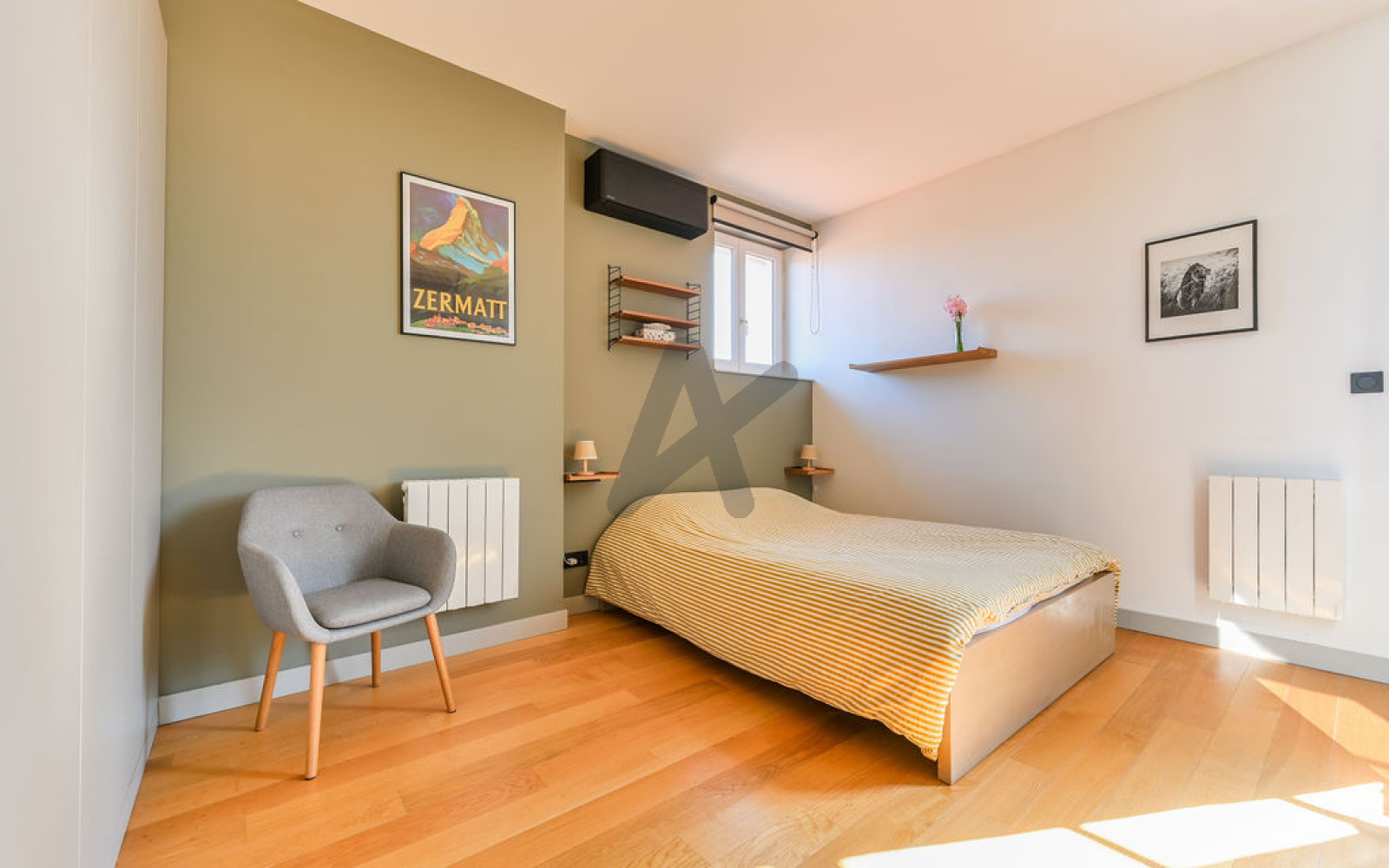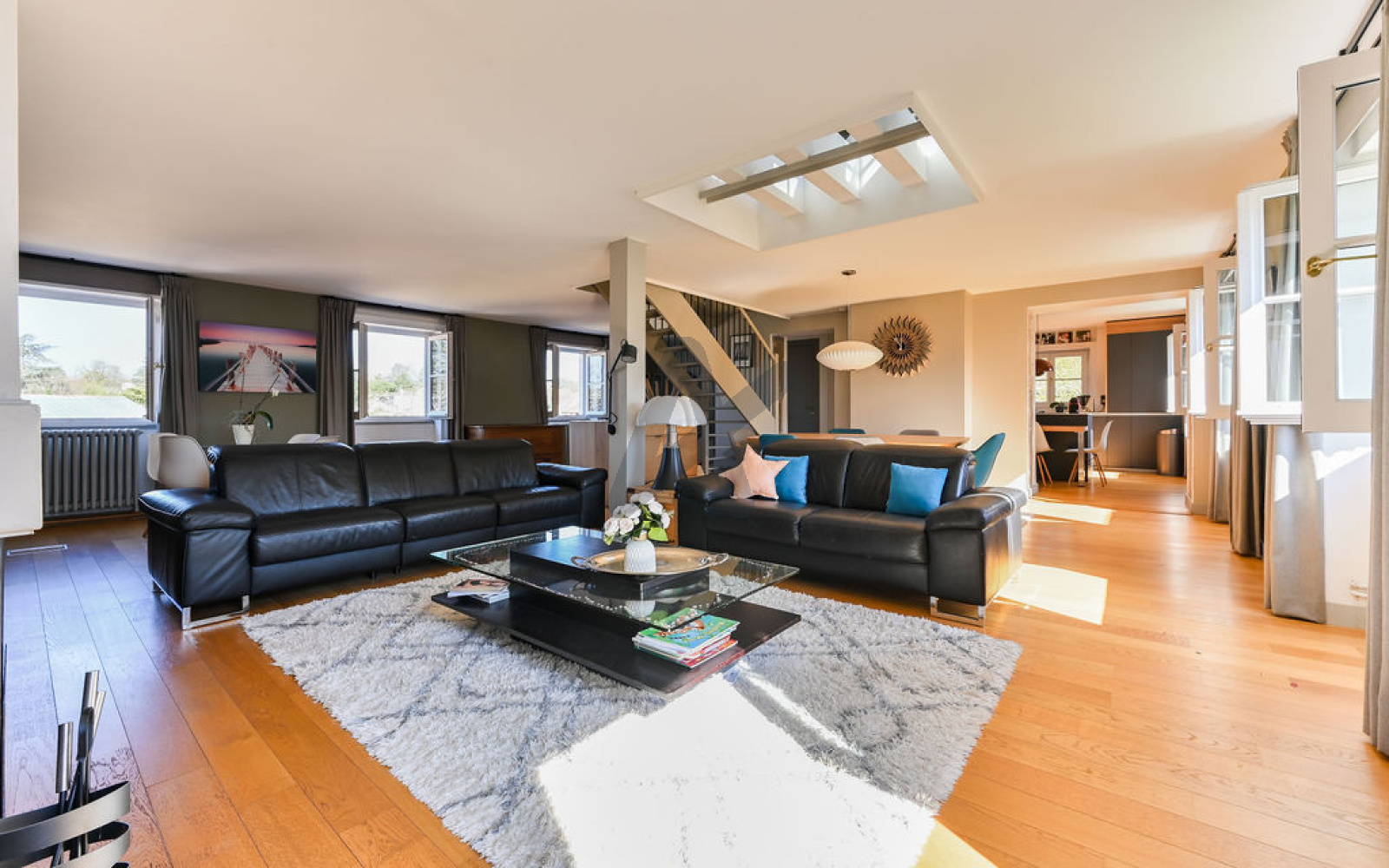 Ecully - Proche du centre, au sein d'une magnifique propriété bourgeoise, découvrez cet appartement de 167m2 env. avec jardin de 600m2 carrez et 177m2 au sol. L'appartement situé au 2ème étage, a bénéficié d'une rénovation totale de qualité, il propose, au rez de chaussée, un spacieux salon traversant avec cheminée, une cuisine semi-ouverte équipée de la marque haut de gamme Valcuccine, une buanderie et la chambre parentale avec dressing et salle de bain. L'étage, dédié aux enfants, se compose d'un palier faisant office de salon TV, de deux belles chambres climatisées, avec grands placards, d'une salle de jeux et d'une salle de douche. Un bureau indépendant de 20m2 env. complète l'appartement. Un jardin de 700m2 (à usage privatif) avec cuisine d'été complète ce bien rare, ainsi qu'un garage (avec prise de recharge pour voiture) et deux places de stationnement. La copropriété a bénéficié de travaux réguliers et ne nécessite pas de travaux, ainsi la toiture a été entièrement rénovée en 2024 (couverture et isolation). Charges de copropriété : 1813€ / an, soit 151€ / mois. Pas de procédure en cours. 11 lots dont 3 lots d'habitation. DPE D / D